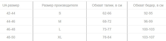 - Розмір: S (42-44), M (44-46), L (46-48)